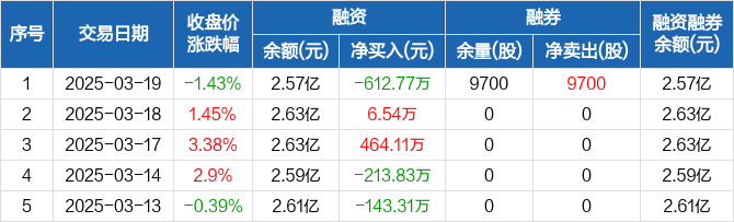 天宸股份:融资净偿还612.77万元,融资余额2.57亿元(03-19)
