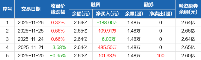 天宸股份:融资净偿还188万元,融资余额2.64亿元(11-26)