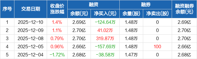 天宸股份:融资净偿还124.64万元,融资余额2.69亿元(12-10)