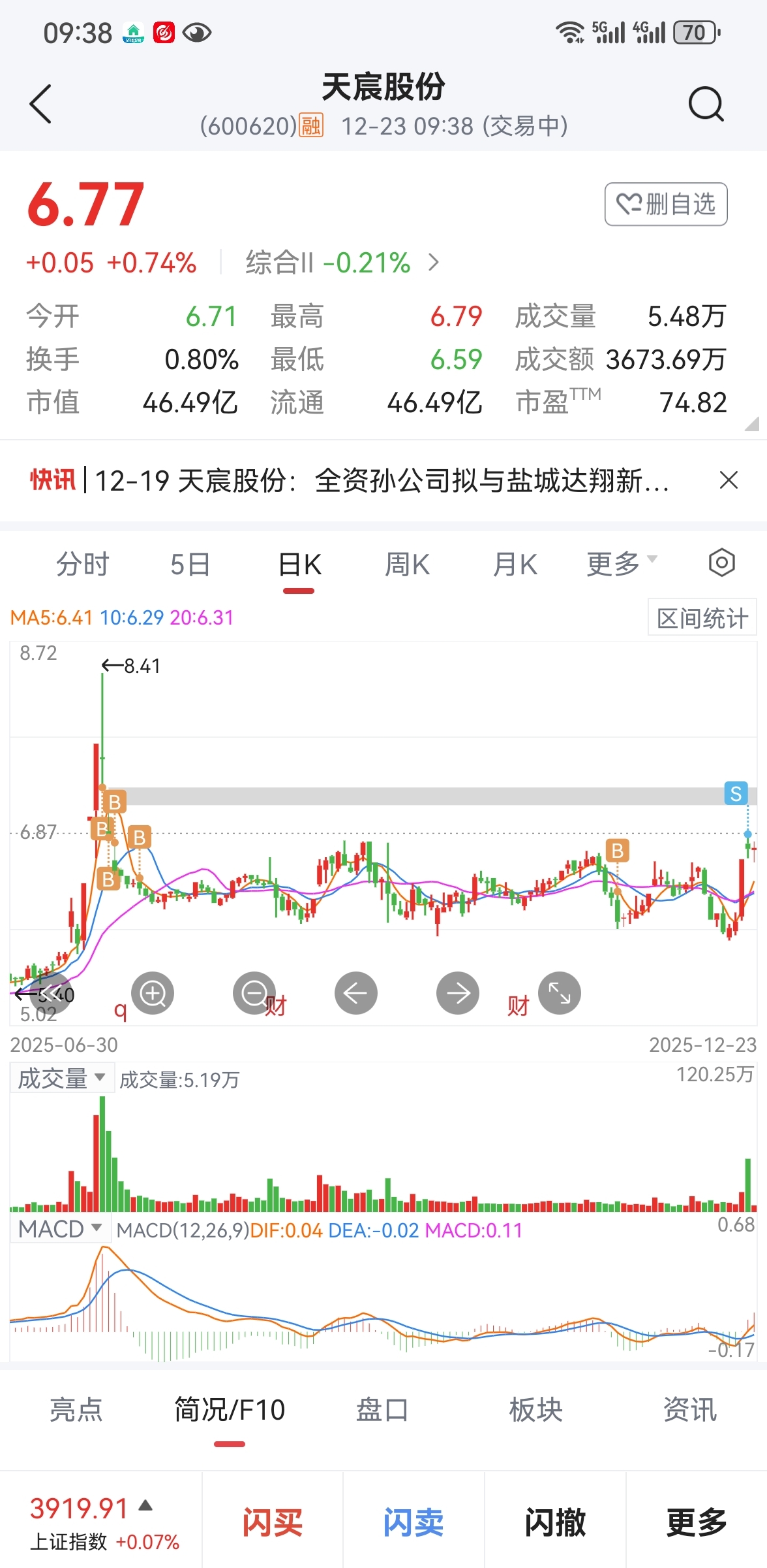 $天宸股份(SH600620)$ 半年的坚守,不知道走的是时候吗?