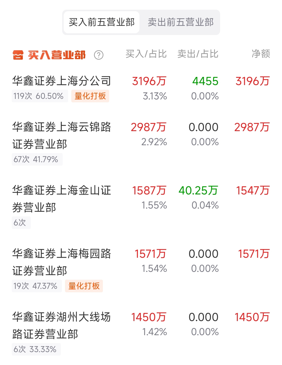 $华鑫股份(SH600621)$ 清一色龙虎榜。