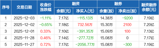 华鑫股份:融资净偿还115.13万元,融资余额7.17亿元(12-03)