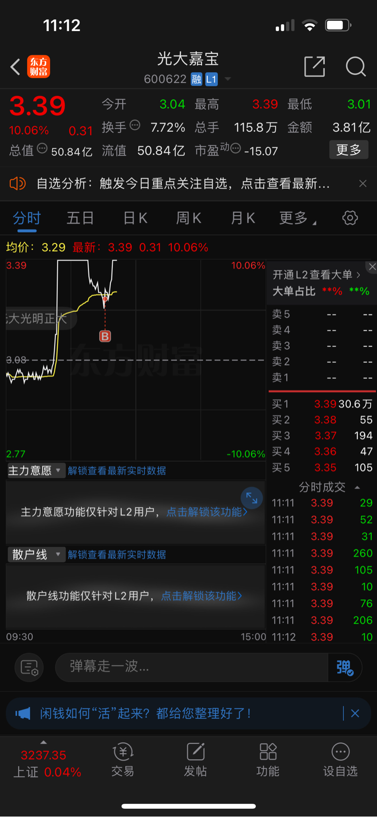 $光大嘉宝(SH600622)$ 顺便补个仓,给你们机会你们也不中用啊!