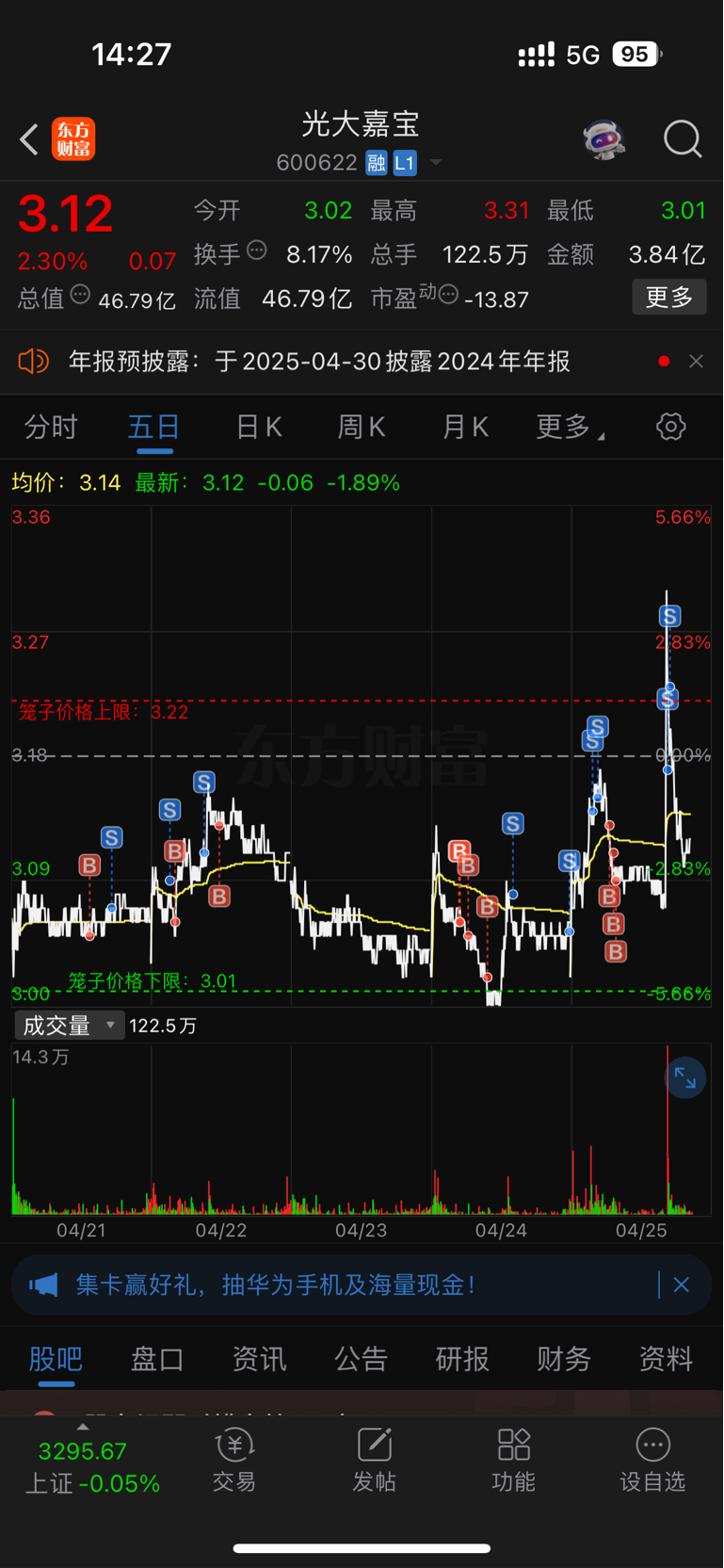 $光大嘉宝(SH600622)$ 卧槽 还可以这样玩