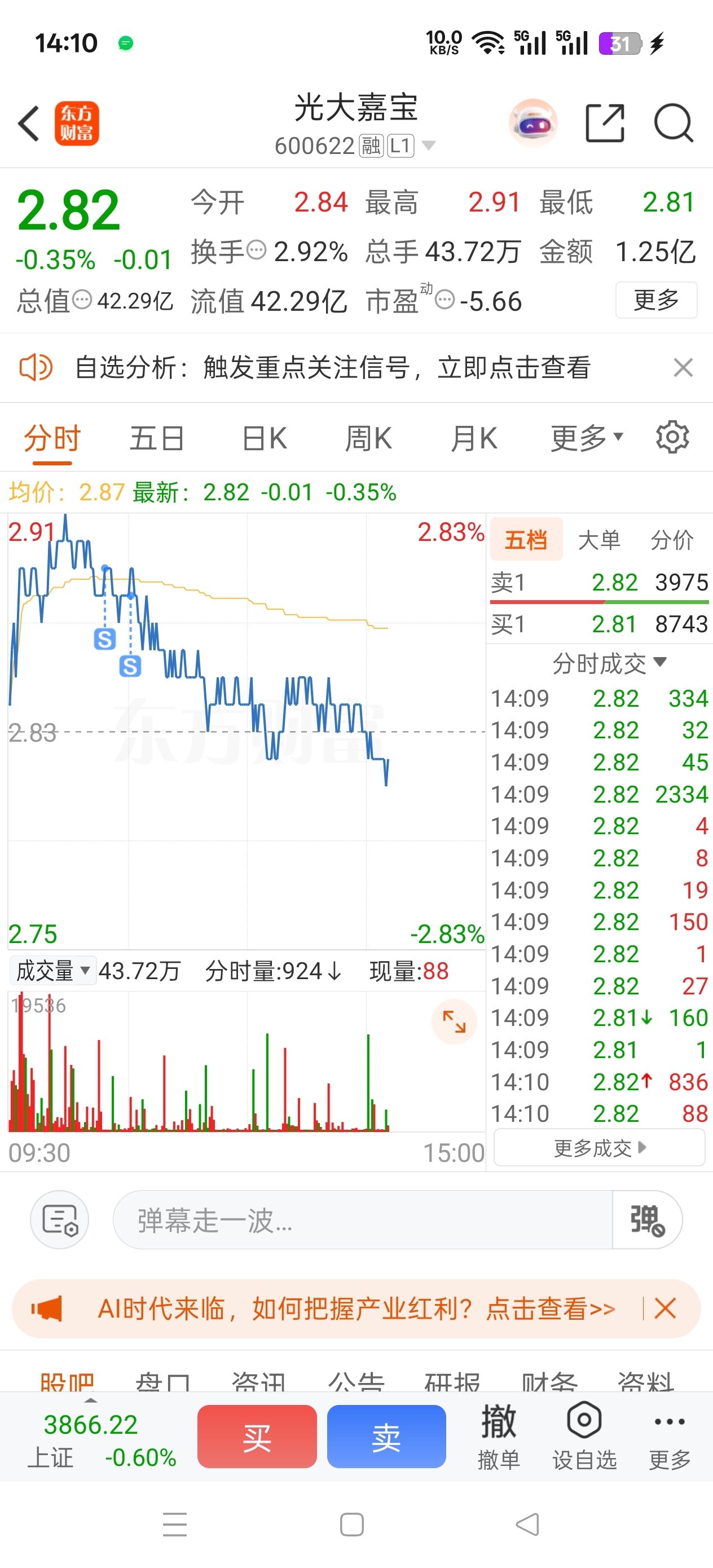 $光大嘉宝(SH600622)$ 记住祖训高开就跑