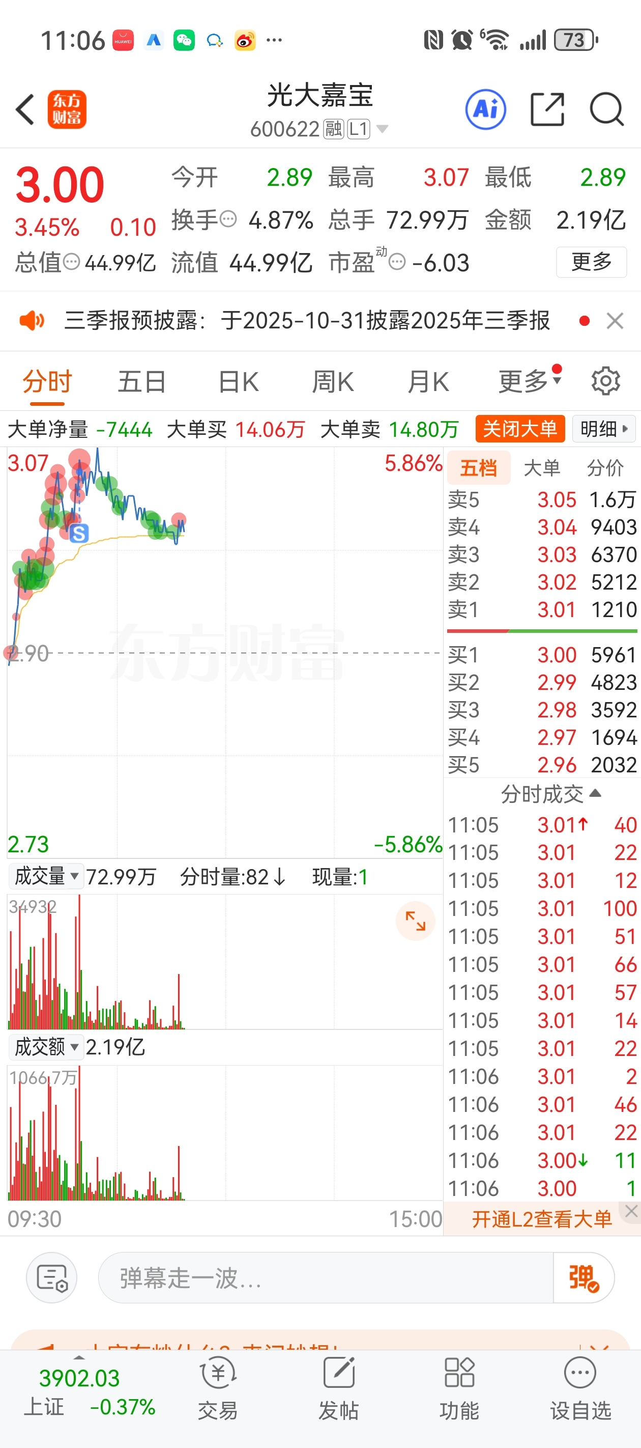 $光大嘉宝(SH600622)$ 我的宝宝没有一次让我输过卖了一半,还留一半