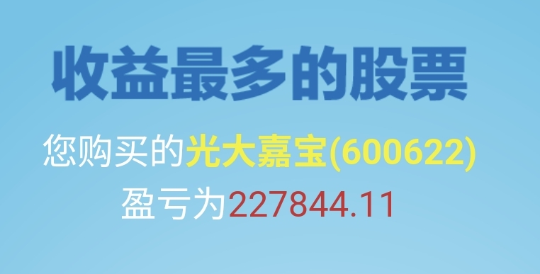 $光大嘉宝(SH600622)$ 这支票是我股票历史中交易次数最多的票,从当年四五块玩到现在两三块,股价是越玩越低,但不妨碍这也是我目前赚钱最多的票。