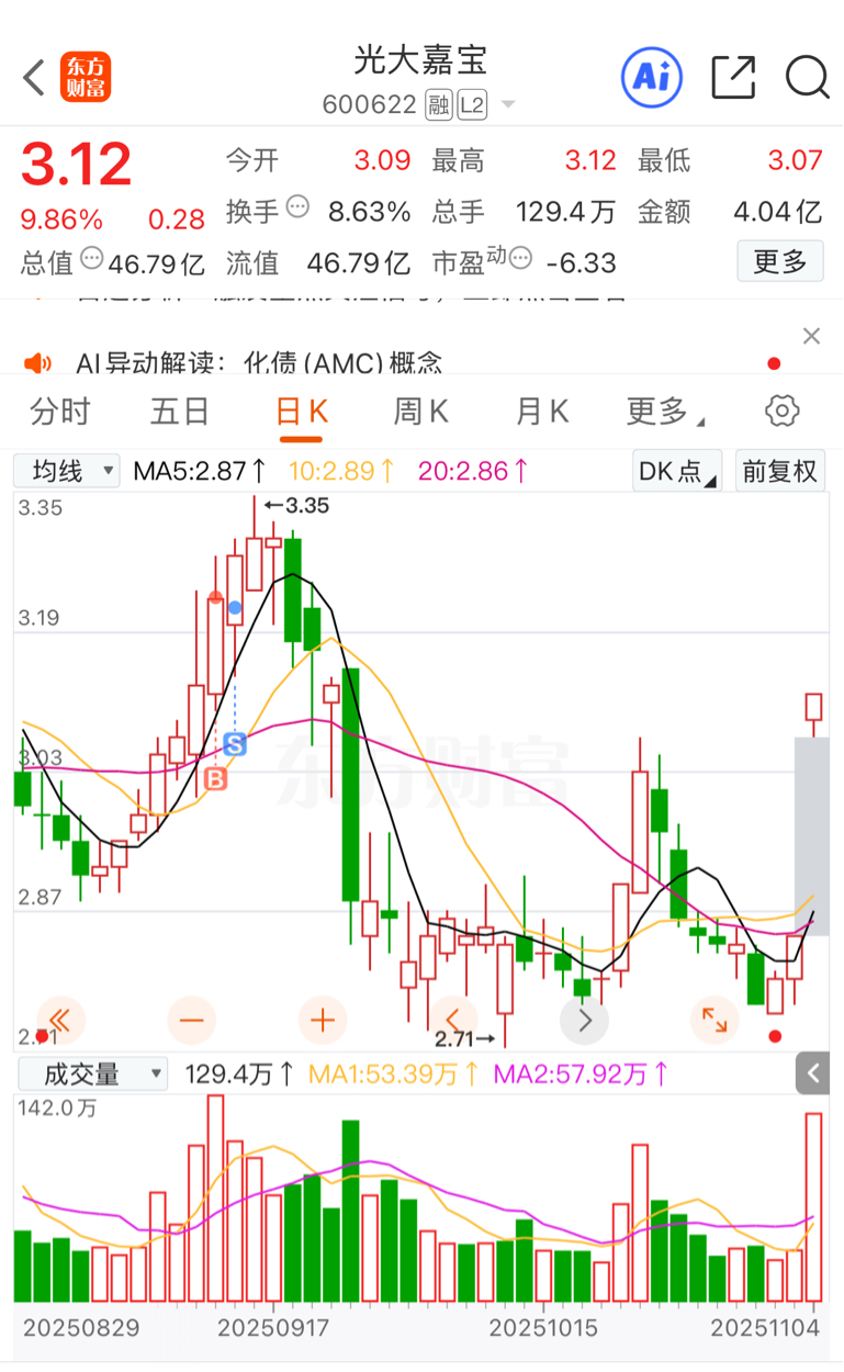 $光大嘉宝(SH600622)$ 昨天看着织布,想买,估计也要拉拉房地产了,早上直接高开秒板