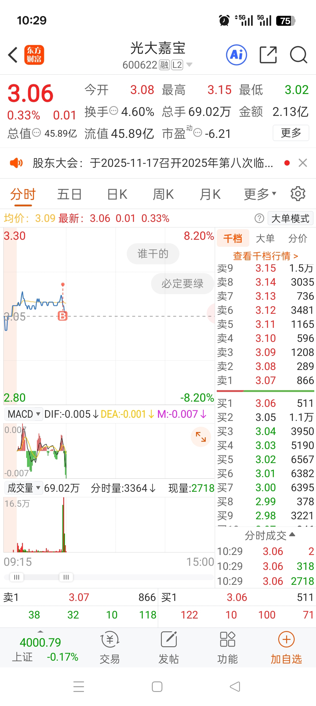 $光大嘉宝(SH600622)$ 挂山顶了
