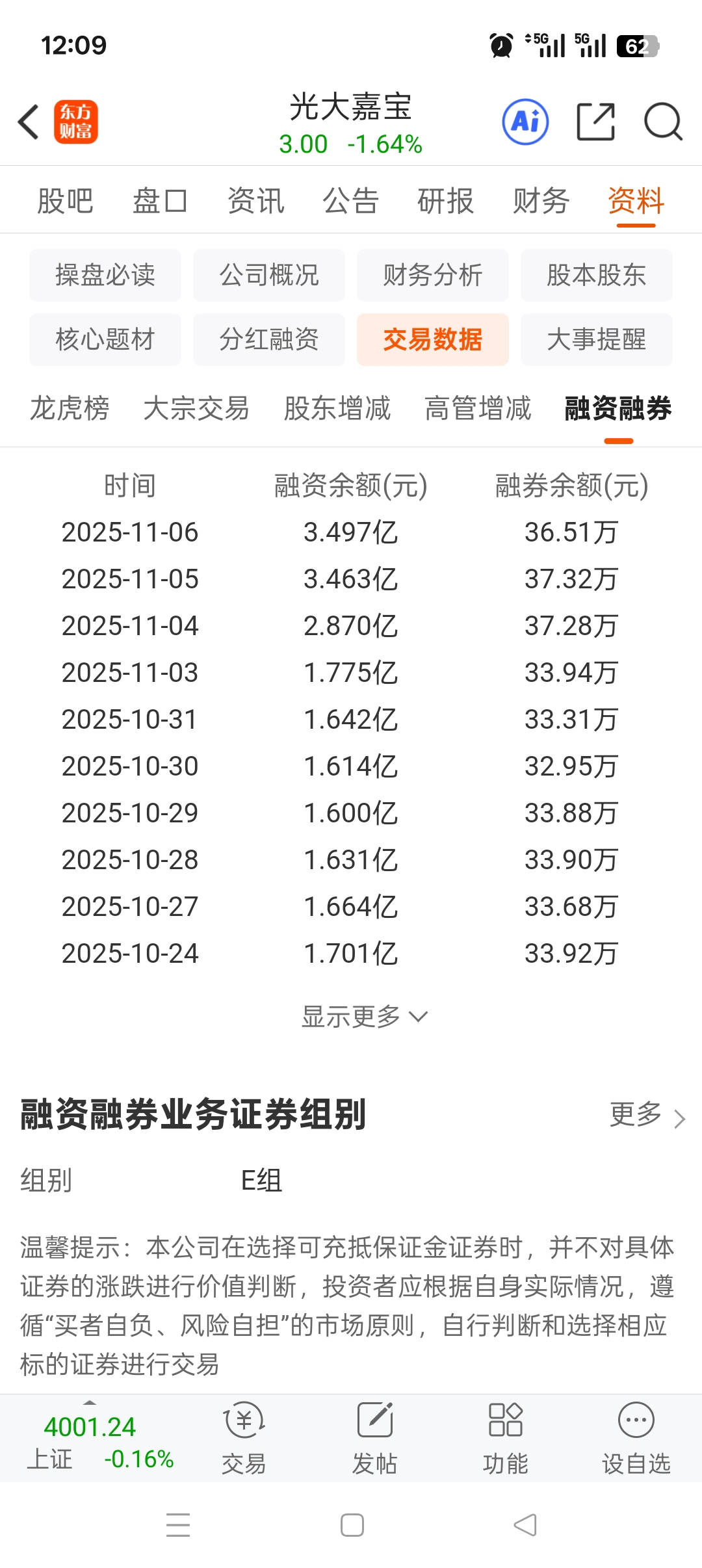 $光大嘉宝(SH600622)$ 1.7亿融资盘出货,也没赚钱啊!!!