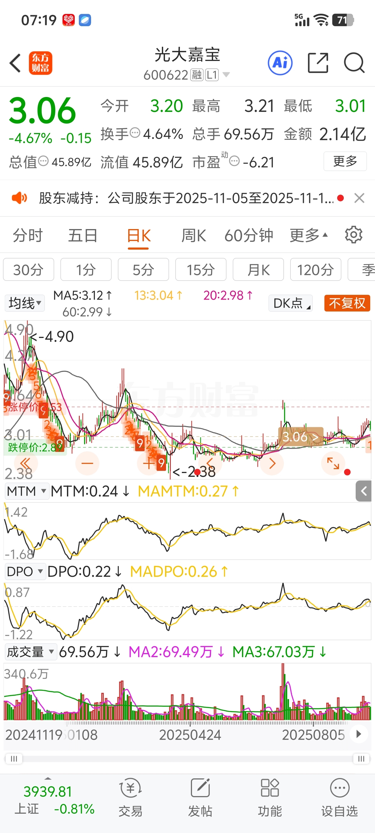 $光大嘉宝(SH600622)$ 每一次的高点都是上一次的低点,懂得自然懂。