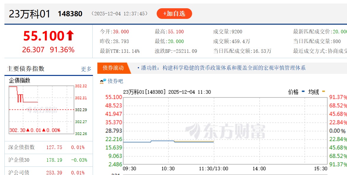 23万科01盘中涨超90%临时停牌-地产有利好?下午能拉起来吗?