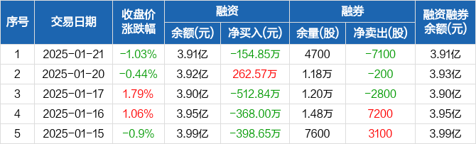 华谊集团:融资净偿还154.85万元,融资余额3.91亿元(01-21)