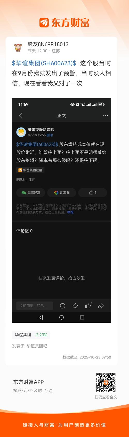 $华谊集团(SH600623)$  这个股当时在9月份我就发出了预警,当时没人相信,现在看看我又对了一次