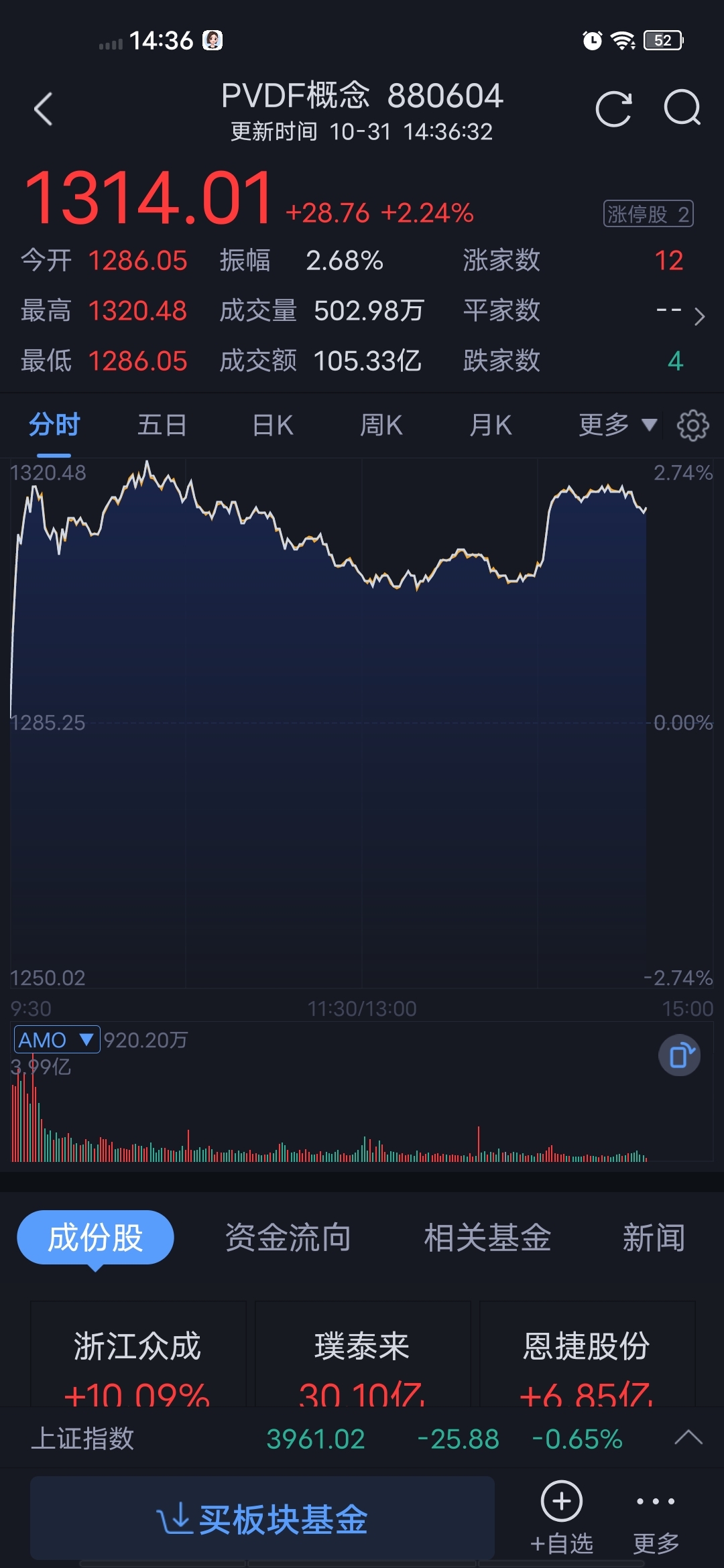 国信证券监测到PVDF概念板块异动,我本来很高兴,因为咱们三爱富的核心产品不就有