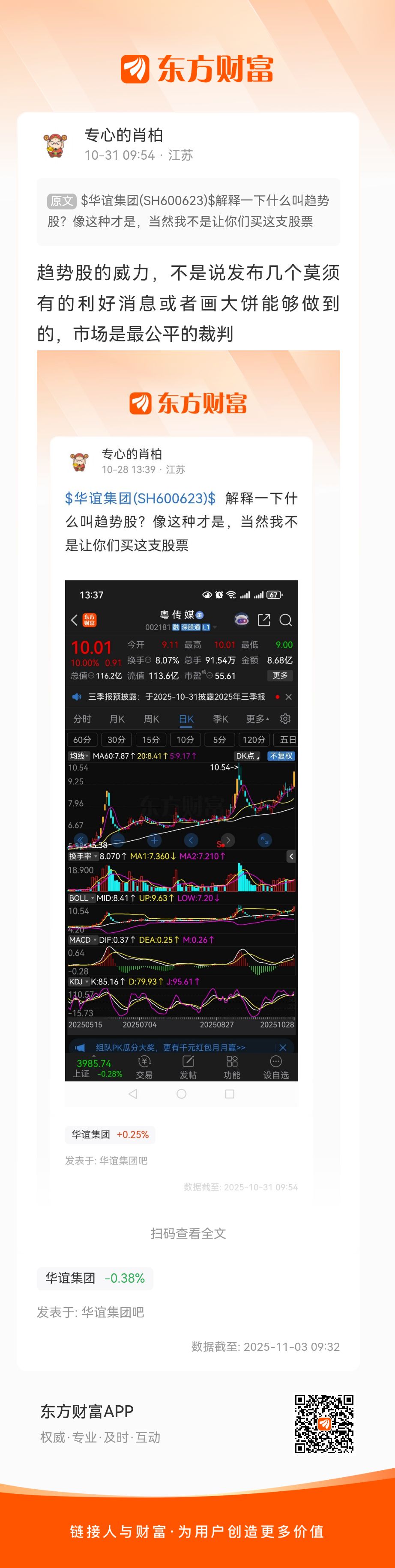 $华谊集团(SH600623)$  解释一下什么叫趋势股?像这种才是,当然我不是让你们买这支股票
