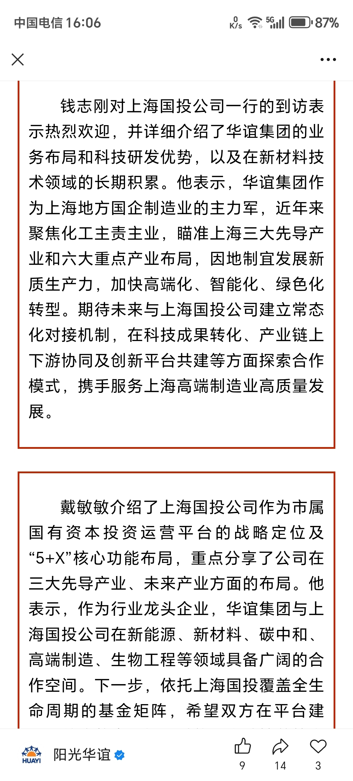 $华谊集团(SH600623)$ 华建集团的大股东上海国投(华谊的三股东)拜访华谊有什么好事啊?