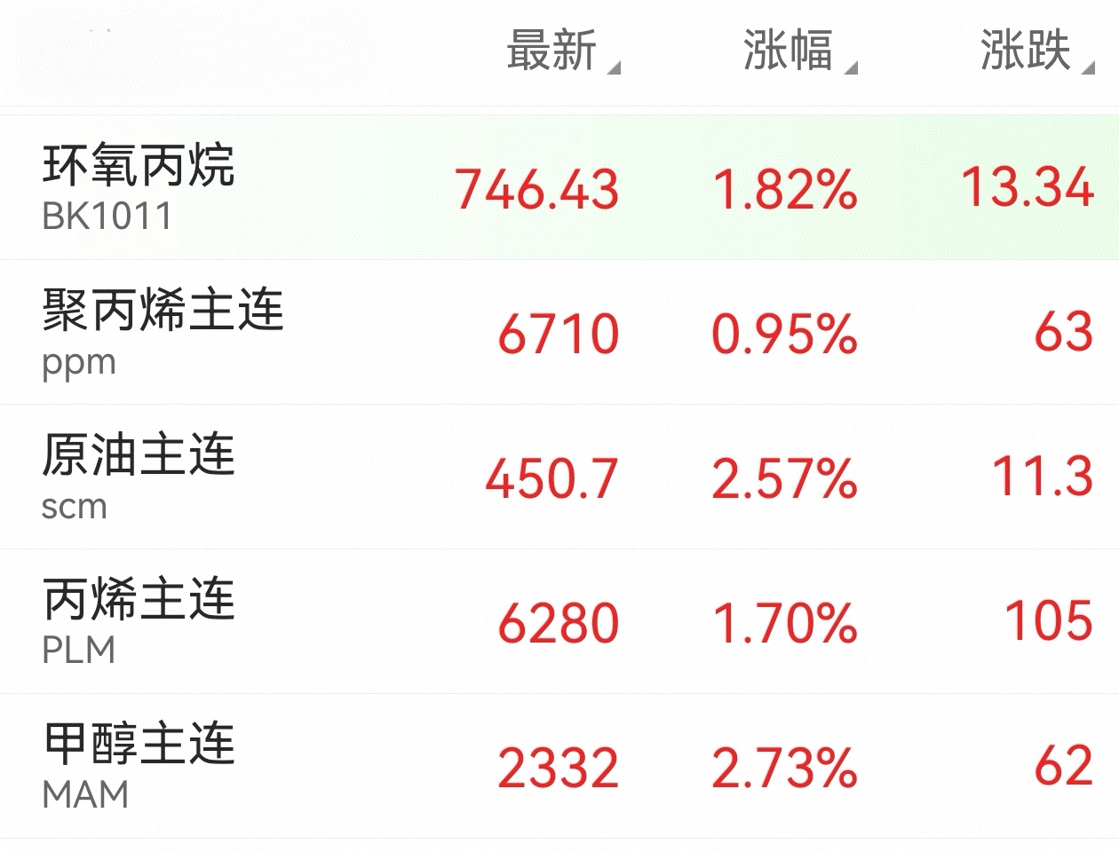 化工期货全线飘红——