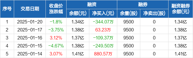 复旦复华:融资净偿还344.07万元,融资余额1.34亿元(01-20)
