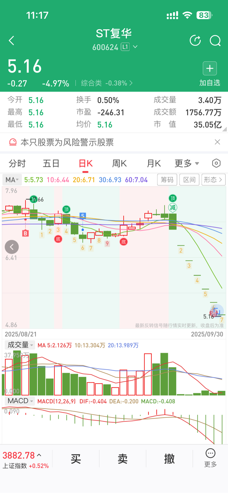 $ST复华(SH600624)$ 差点被按住了呀