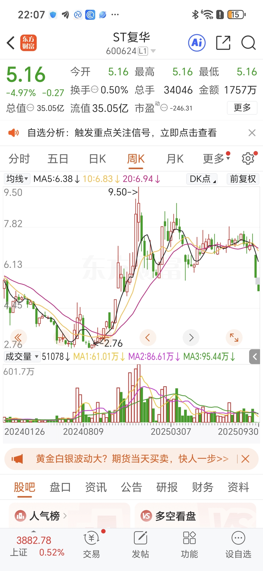 $ST复华(SH600624)$ 看看涨就多少板,那些说三到五个板抄底了,良心不会痛吗?