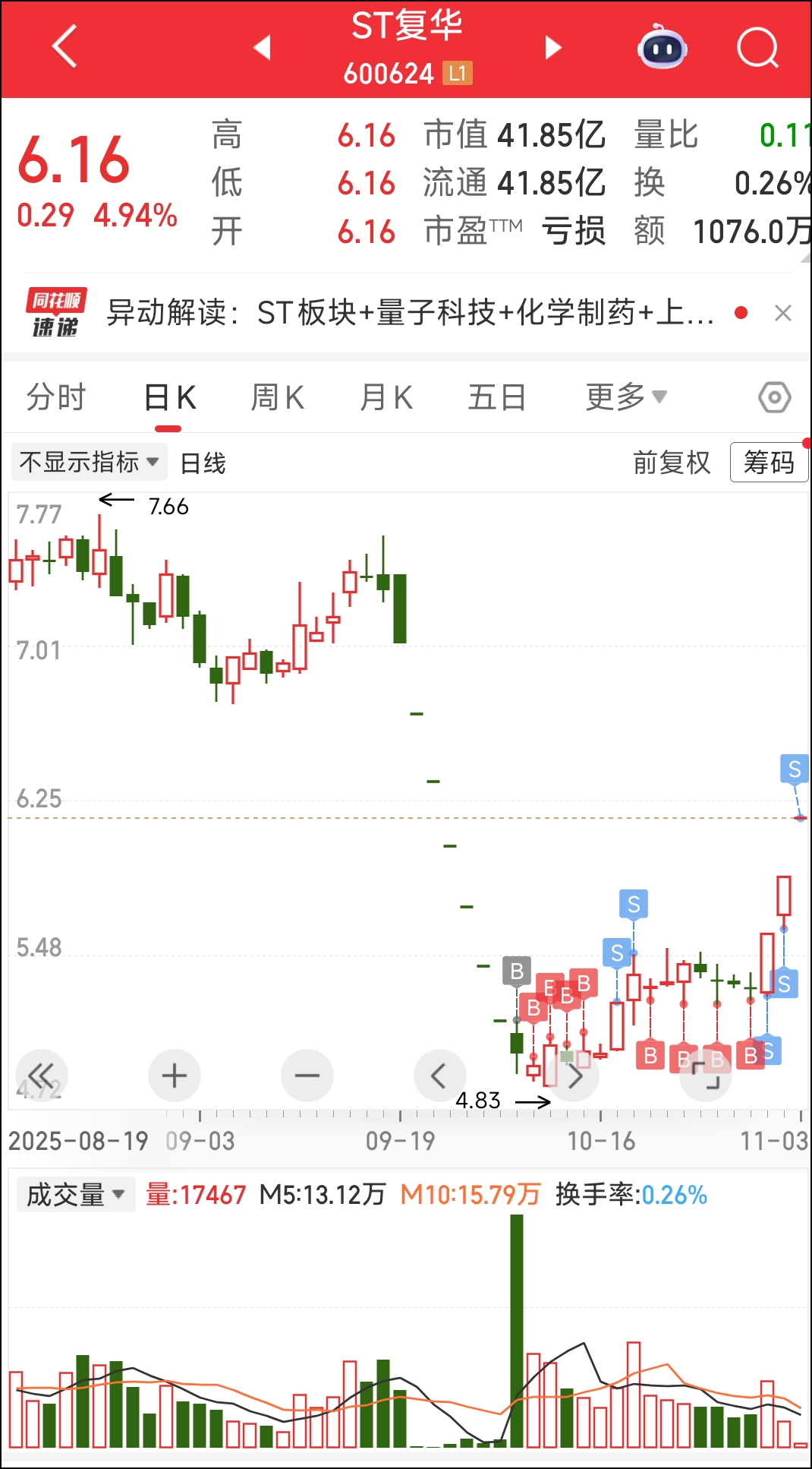 $ST复华(SH600624)$ 连续涨停板要来了,姐姐不再寂寞,嘻嘻