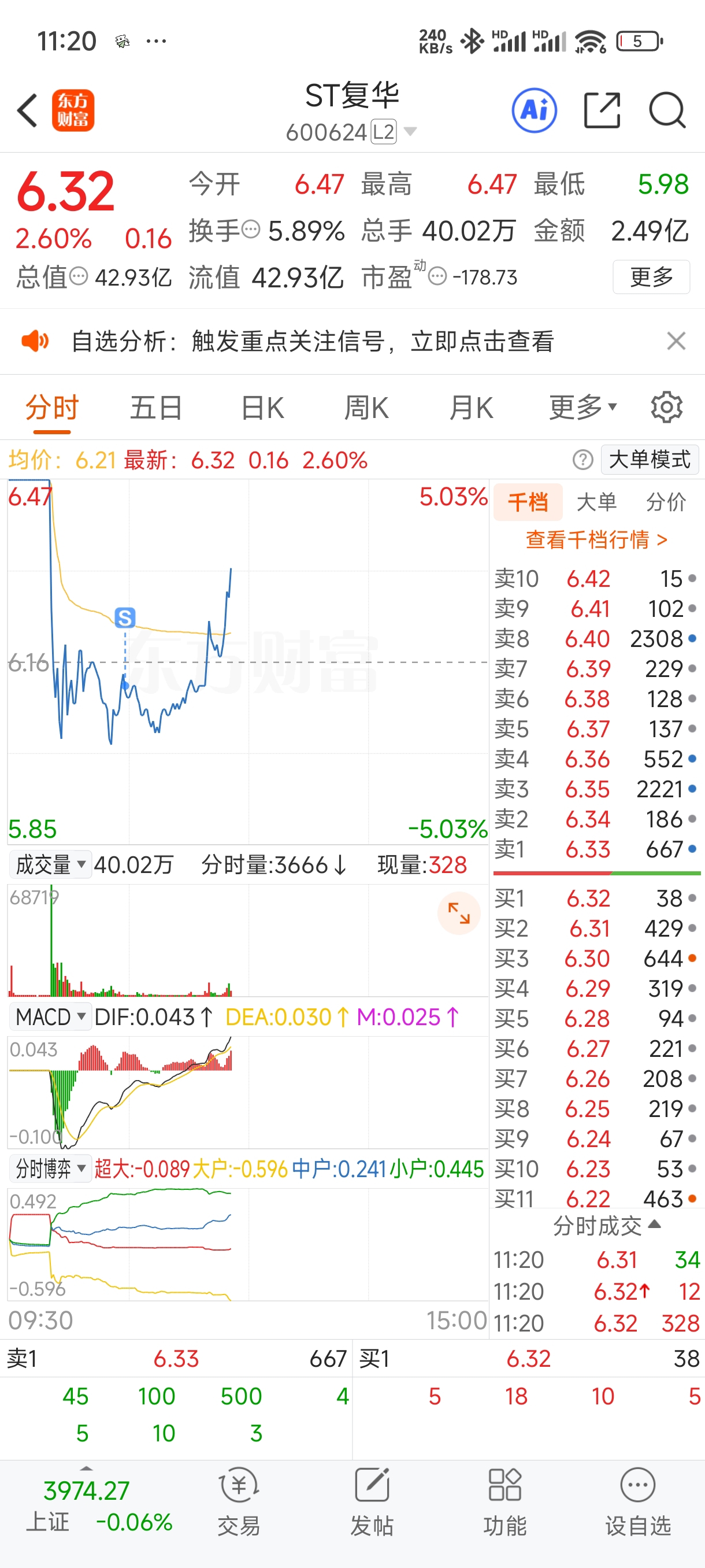 $ST复华(SH600624)$ 上午没时间盯盘,这么玩呢