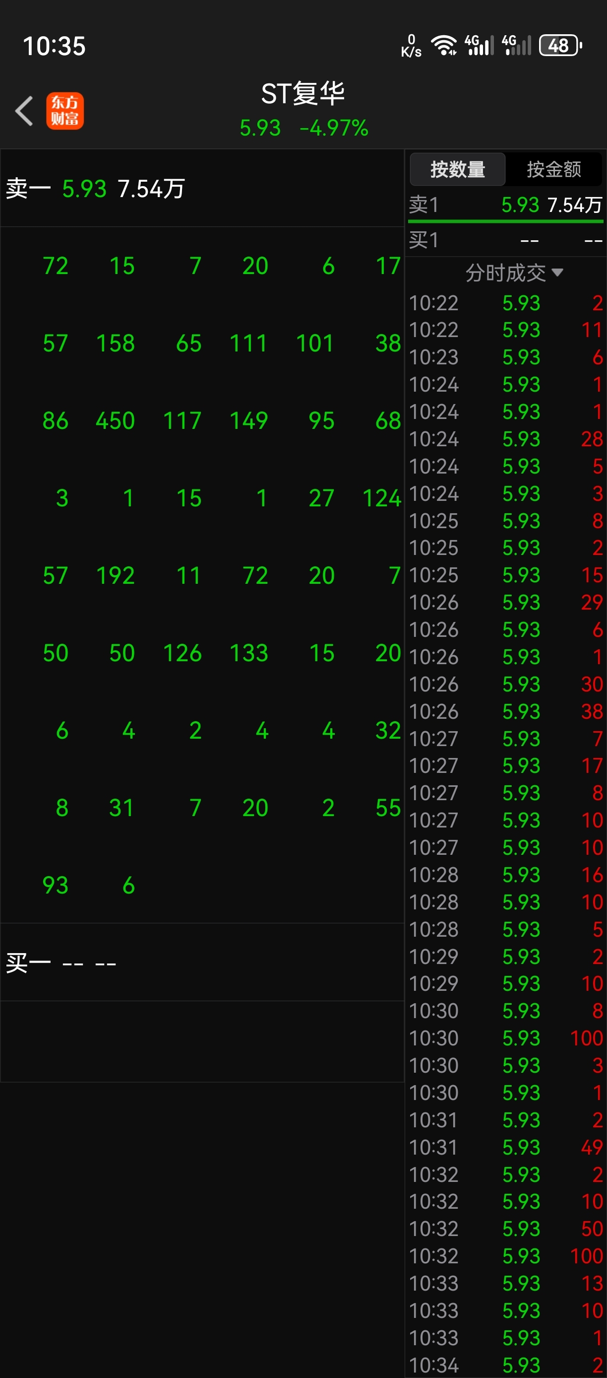$ST复华(SH600624)$ 跌停认命了。意y一下,全是小单。希望能拉起来