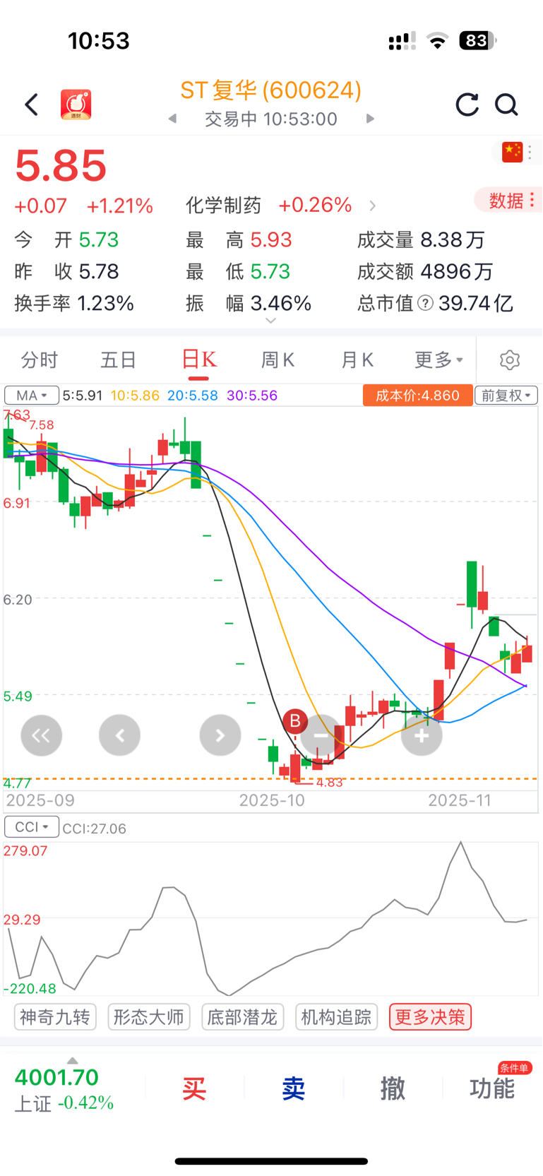 $ST复华(SH600624)$ 低点买入 无惧涨跌 等明年摘帽后肯定能赚的盆满钵满