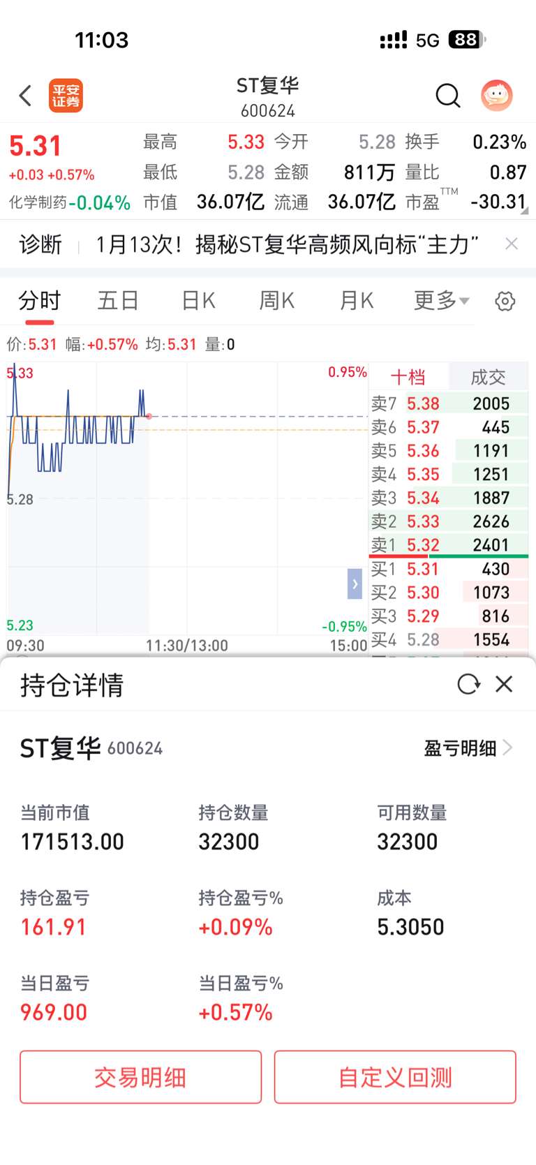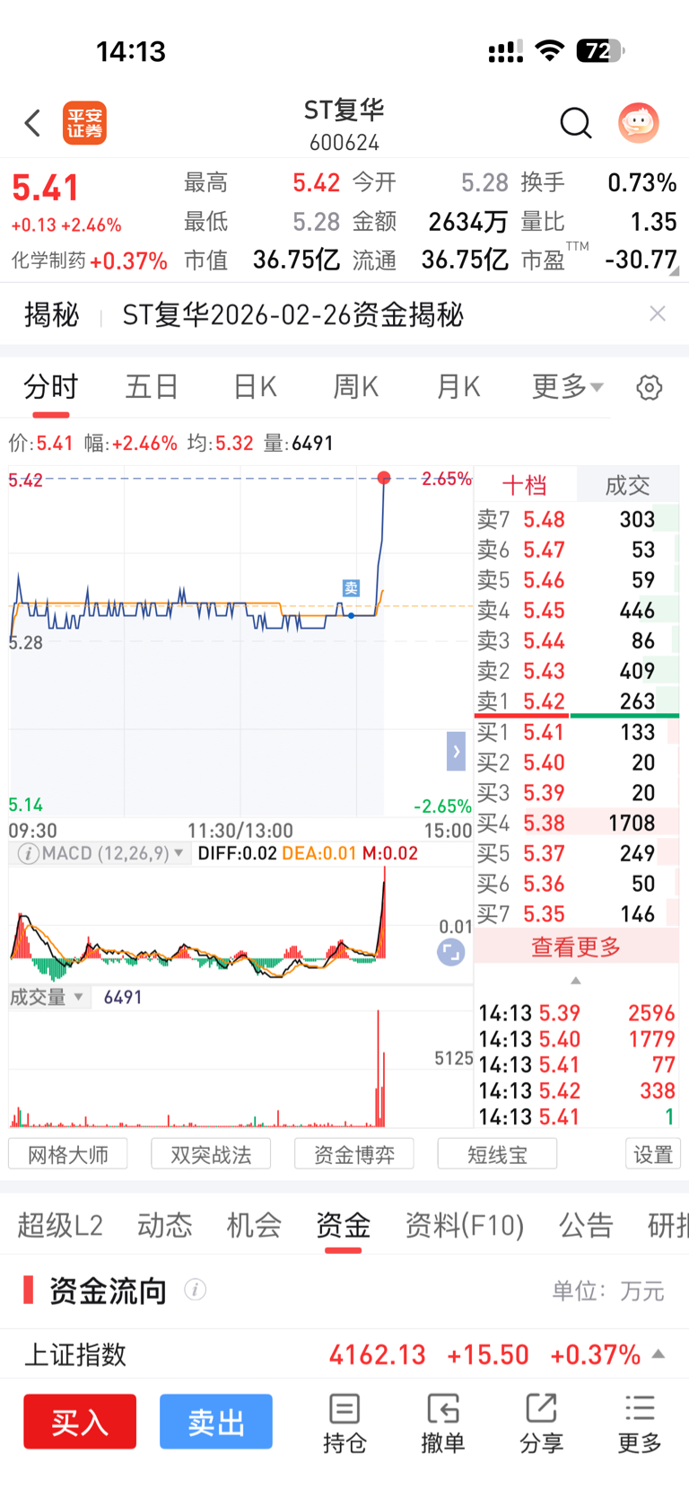 $ST复华(SH600624)$ 气死我了,一卖就拉。就差我那两三万股吗