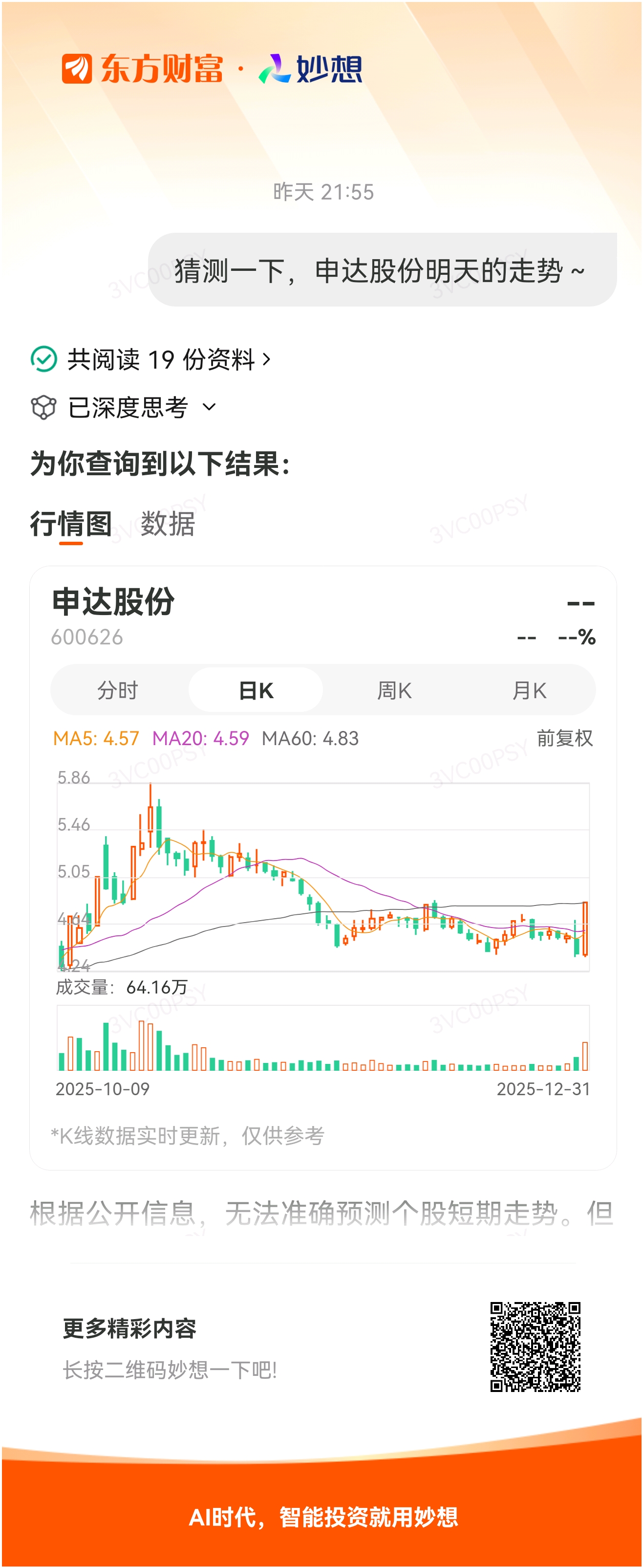 #@妙想,你怎么看?# 妙想一下:猜测一下,申达股份明天的走势~