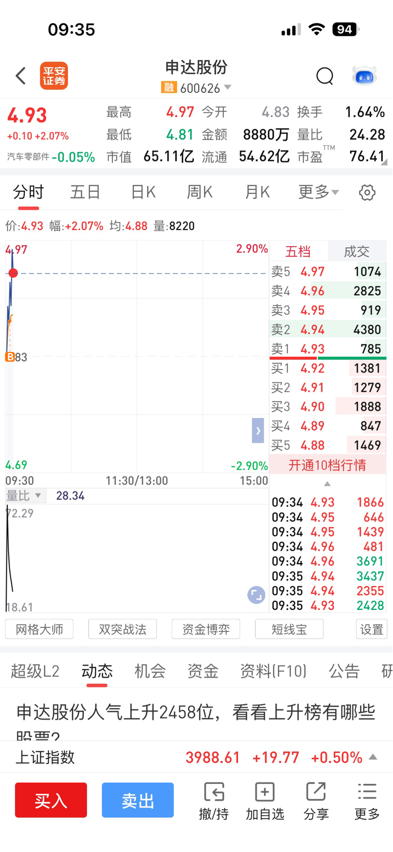 今日介入: $申达股份(SH600626)$