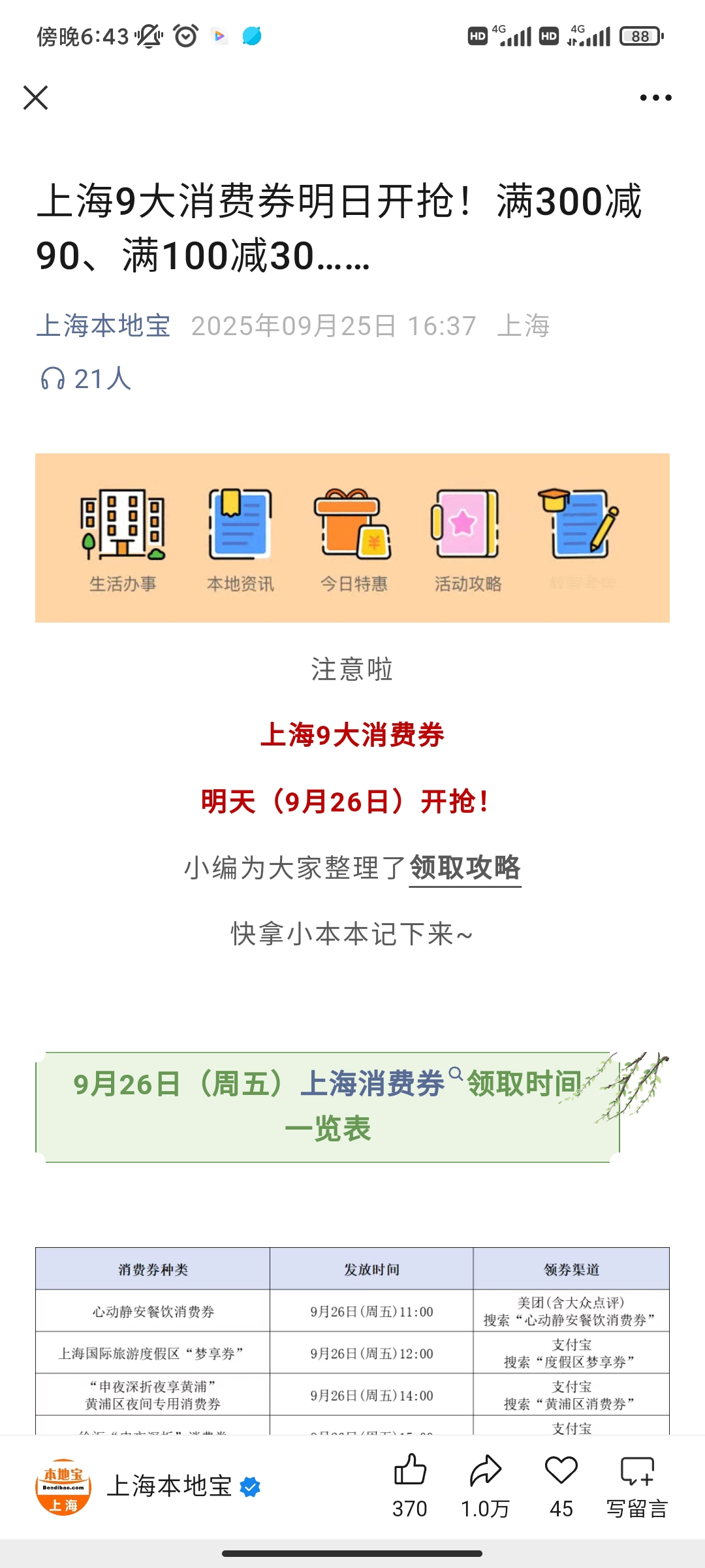 $新世界(SH600628)$ 上海每月都在发消费券……