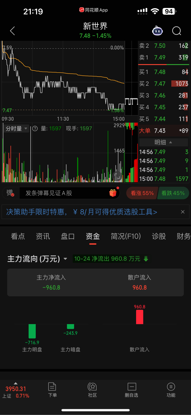 $新世界(SH600628)$ 明盘暗盘都在流出