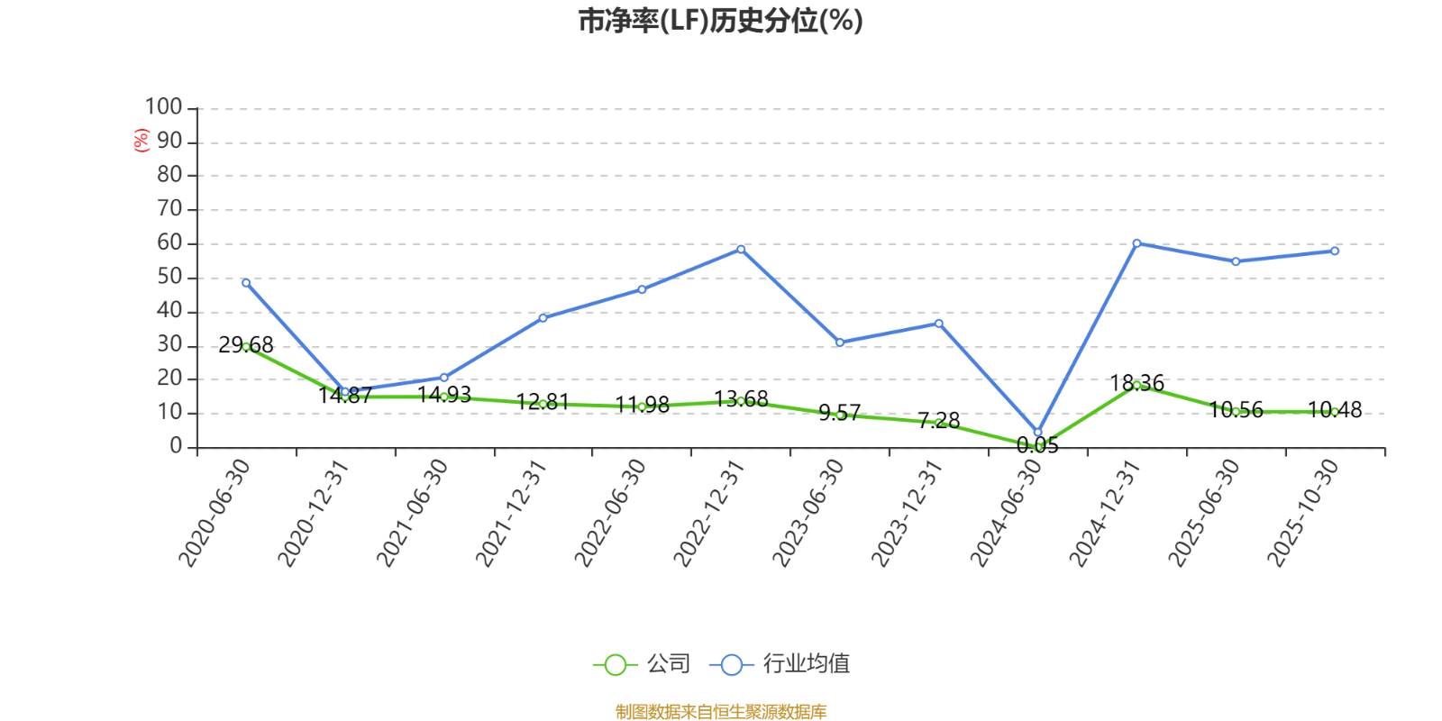 市盈率、市净率为负时,不显示当期分位数,会导致折线图中断。
