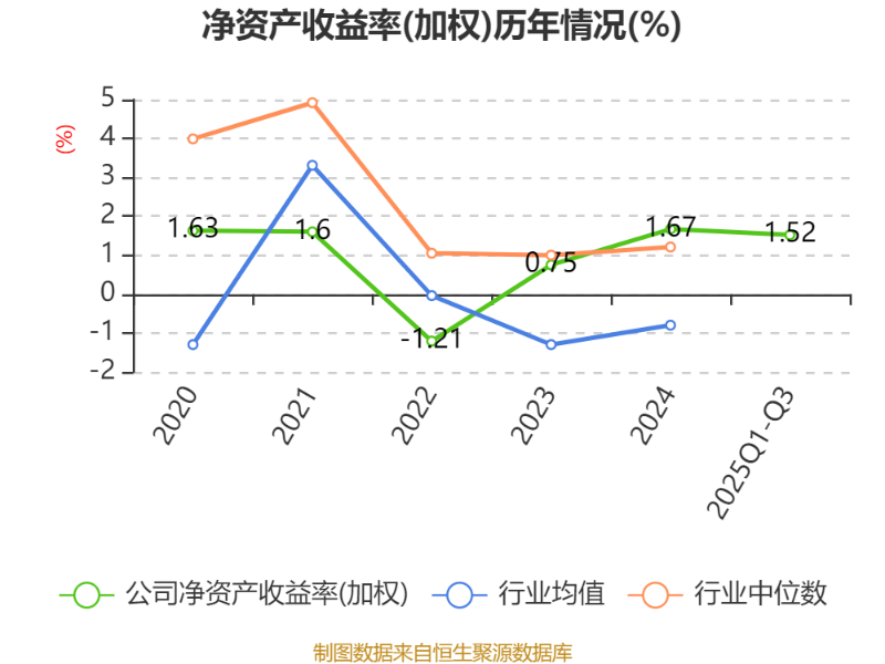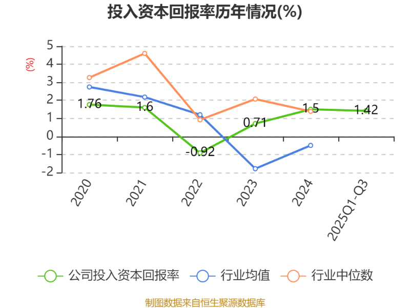 盈利能力方面, 2025年前三季度公司加权平均净资产收益率为1.52%,同比下降0.03个百分点。公司2025年前三季度投入资本回报率为1.42%,较上年同期上升0.01个百分点。