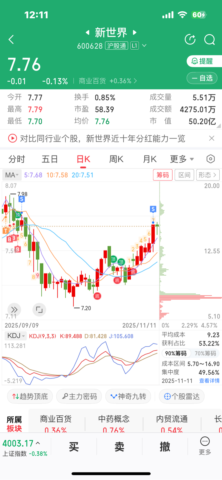 $新世界(SH600628)$ 这个价格怎么有这么多获利盘哇