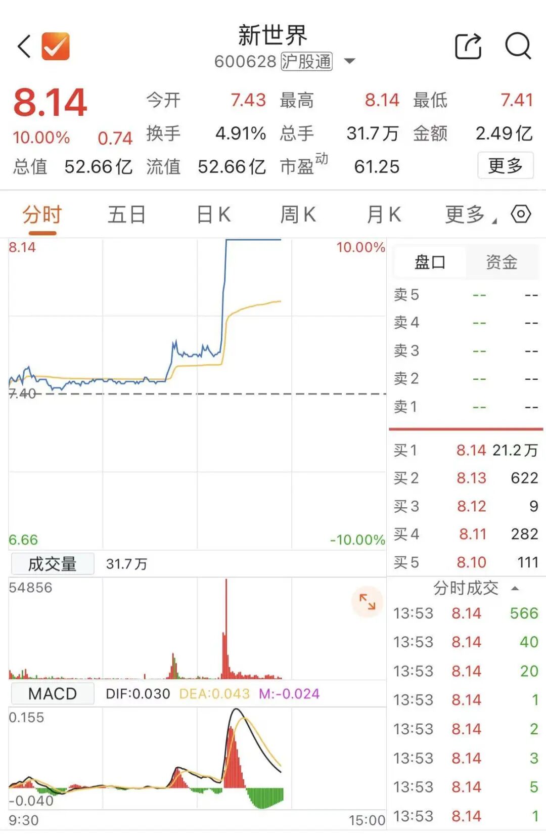 午后异动!600628,直线涨停