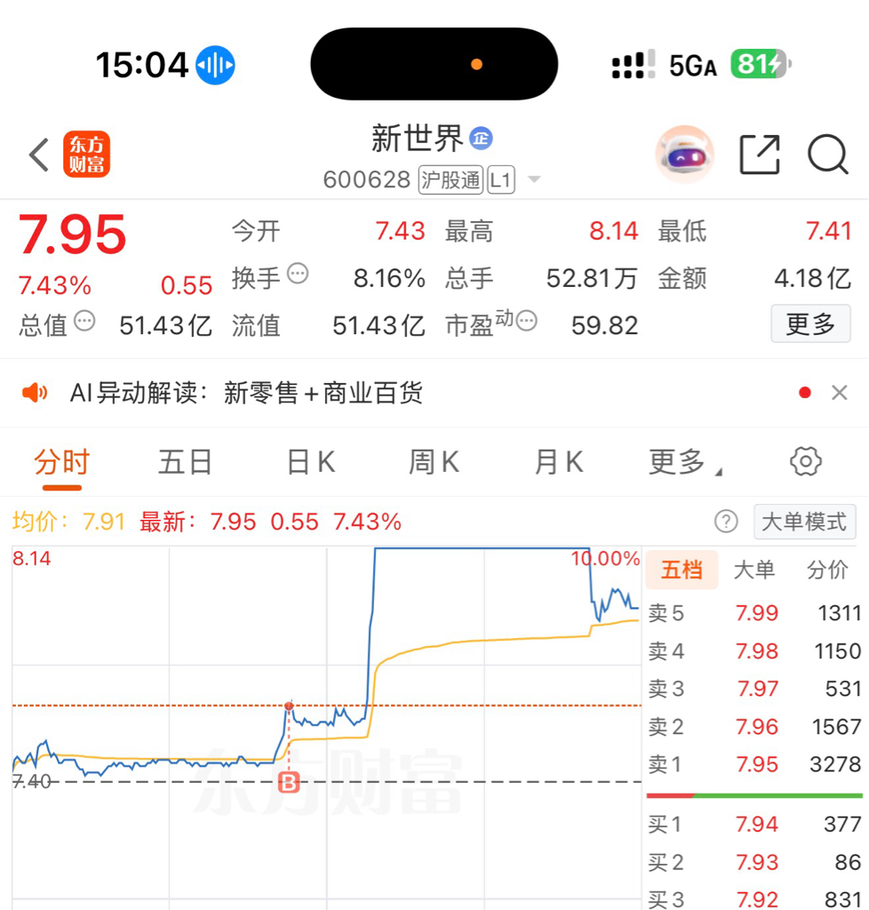 $新世界(SH600628)$ 明天能不割我吗