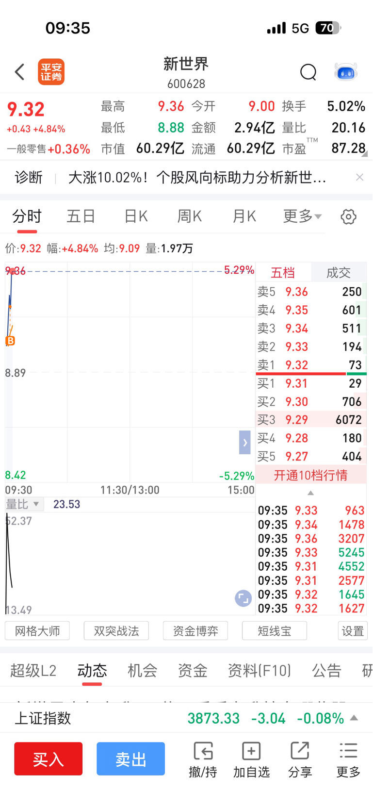 今日介入:$新世界(SH600628)$