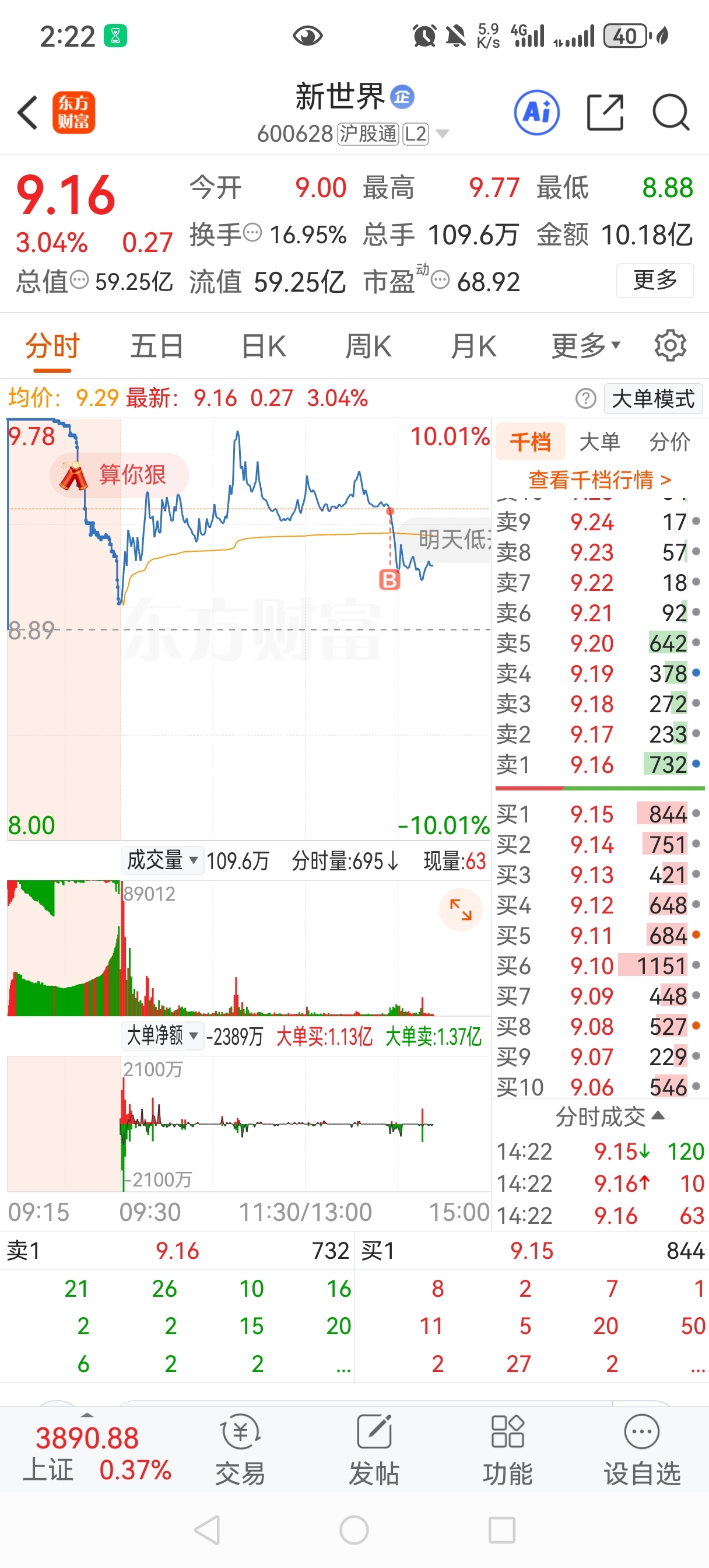 $新世界(SH600628)$ 我一买你就下杀,做局我是吧