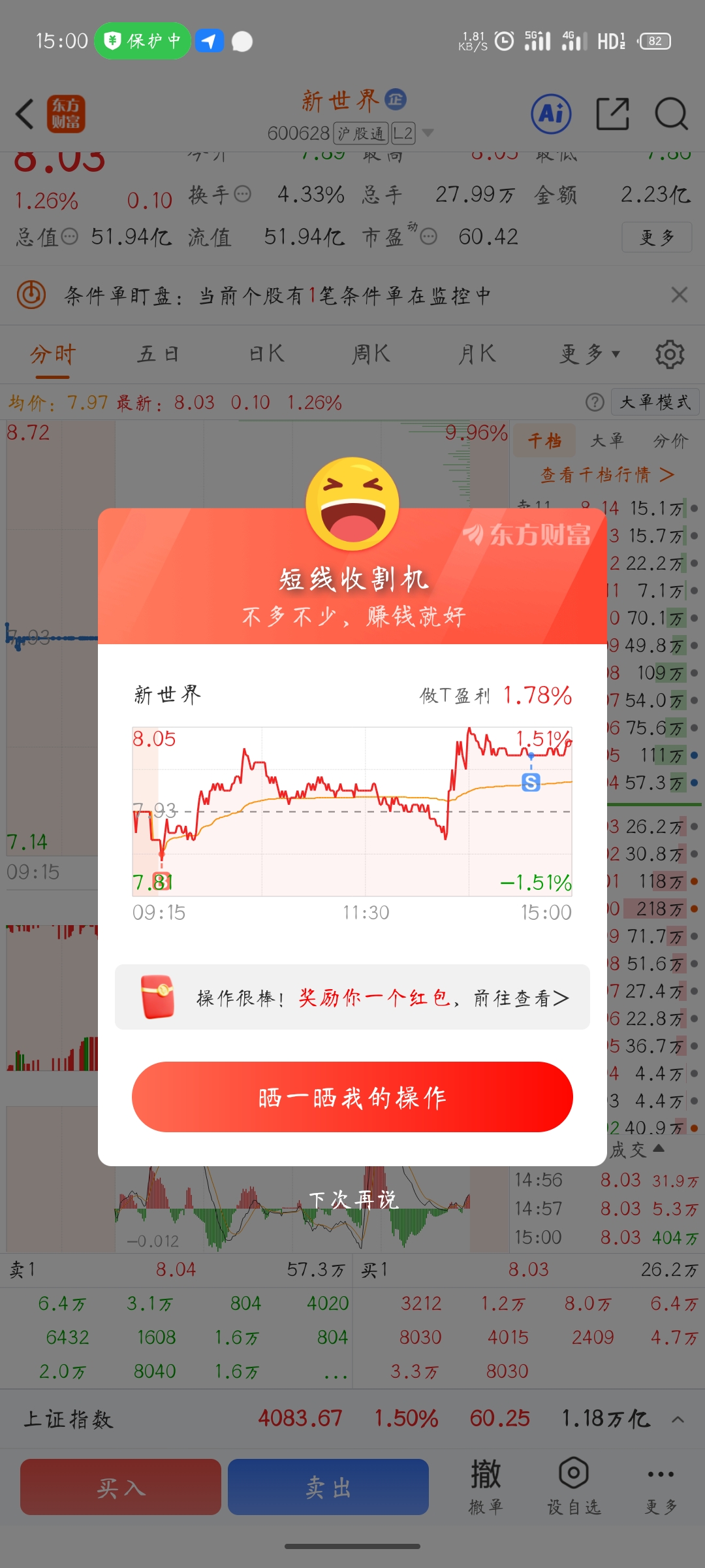 希望你明天能继续上涨,9.62的本,现在已经到9.28了,早点解套