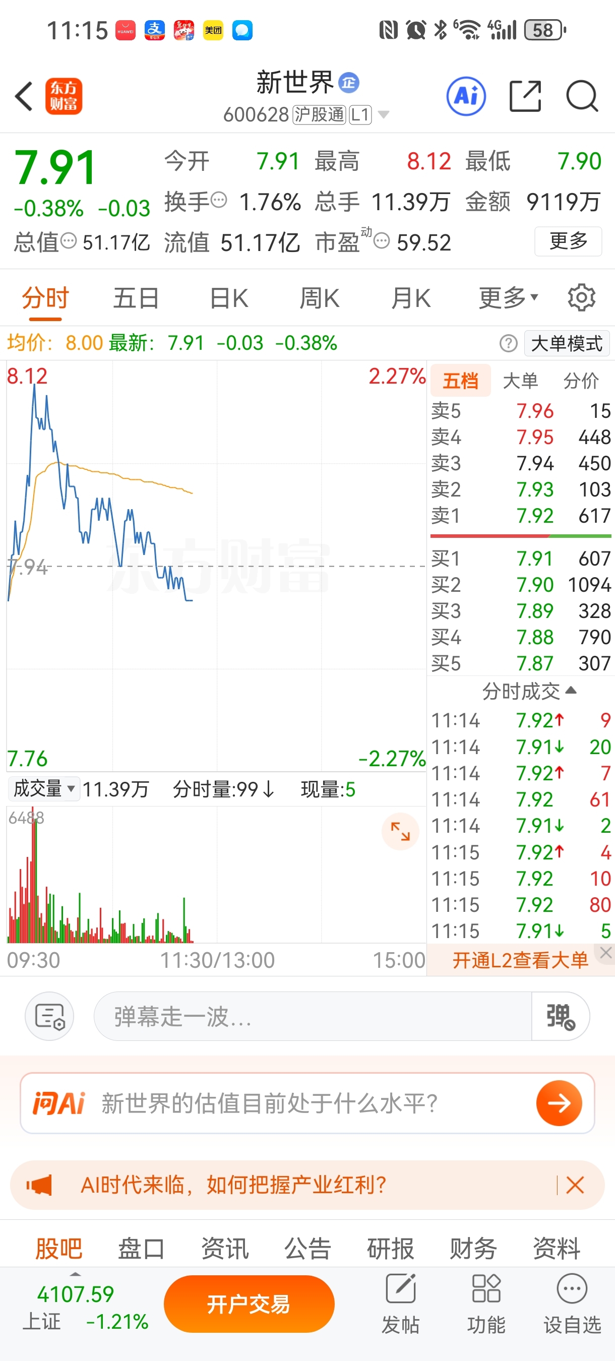 $新世界(SH600628)$ 大盘正V,你倒V