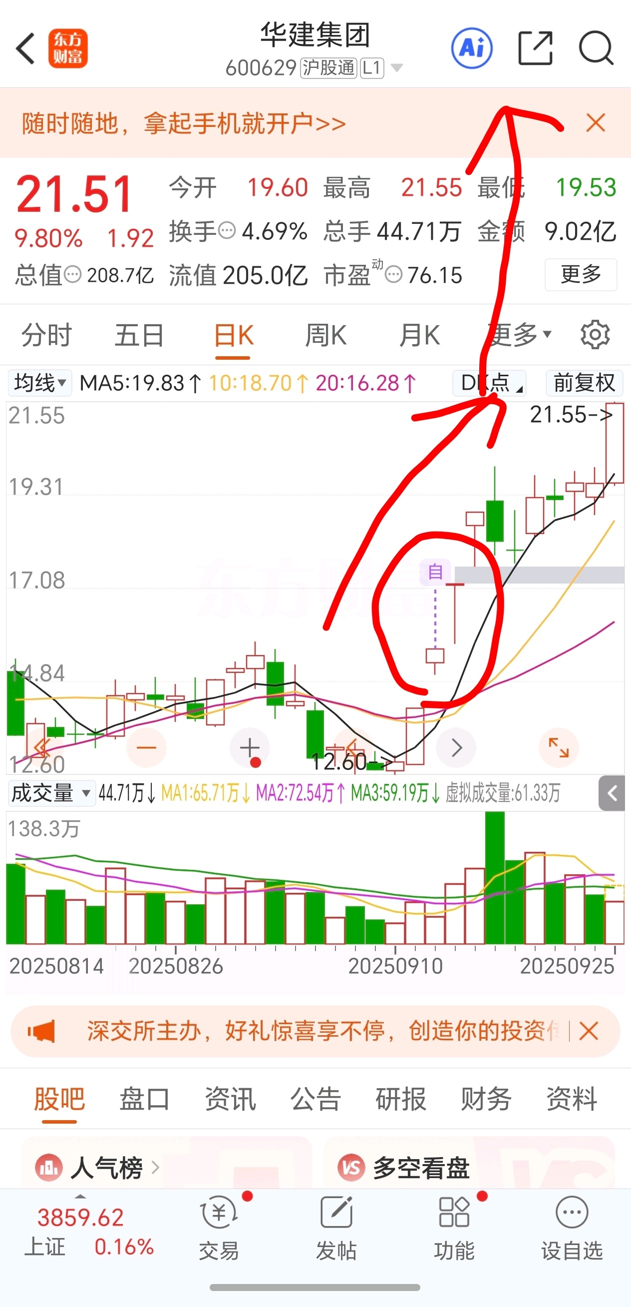 $华建集团(SH600629)$ 昨天午盘提示华建时还没封板,上周跟凯美一起定的,昨天突破发帖了涂鸦的主升浪,有点丑但还算正确,正式突破早上开盘又提示有机会!