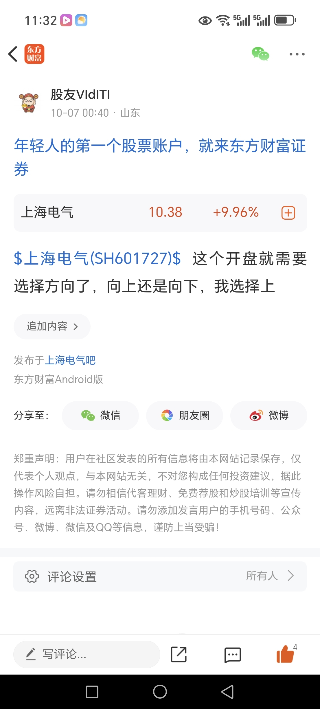 温馨提示: 1.根据《证券法》规定,禁止编造、传播虚假信息或者误导性信息,扰乱证券市场;2.用户在本社区发表的所有资料、言论等仅代表个人观点,与本网站立场无关,不对您构成任何投资建议。用户应基于自己的独立判断,自行决定证券投资并承担相应风险。《东方财富社区管理规定》