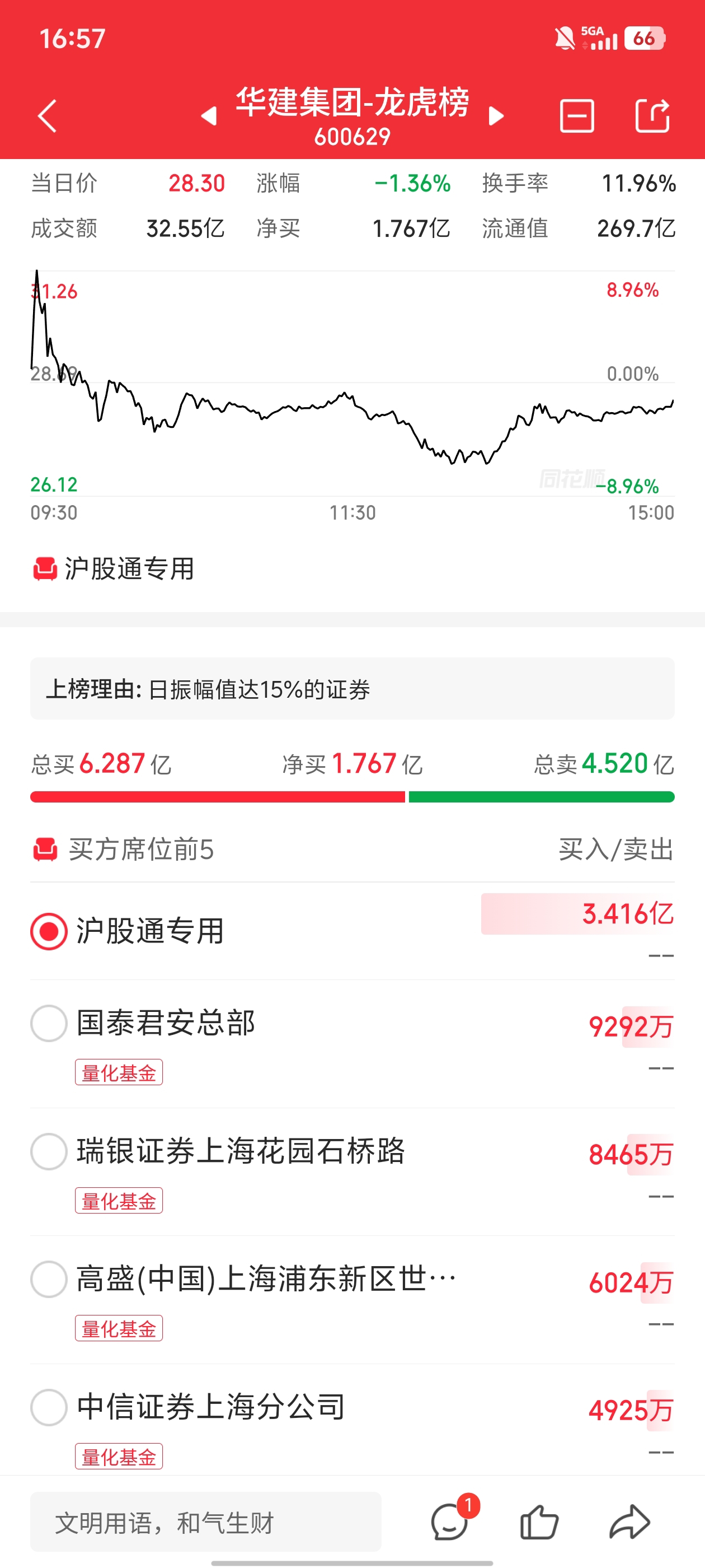 $华建集团(SH600629)$ 全是量化 触发了什么因子?? 借壳成功了??