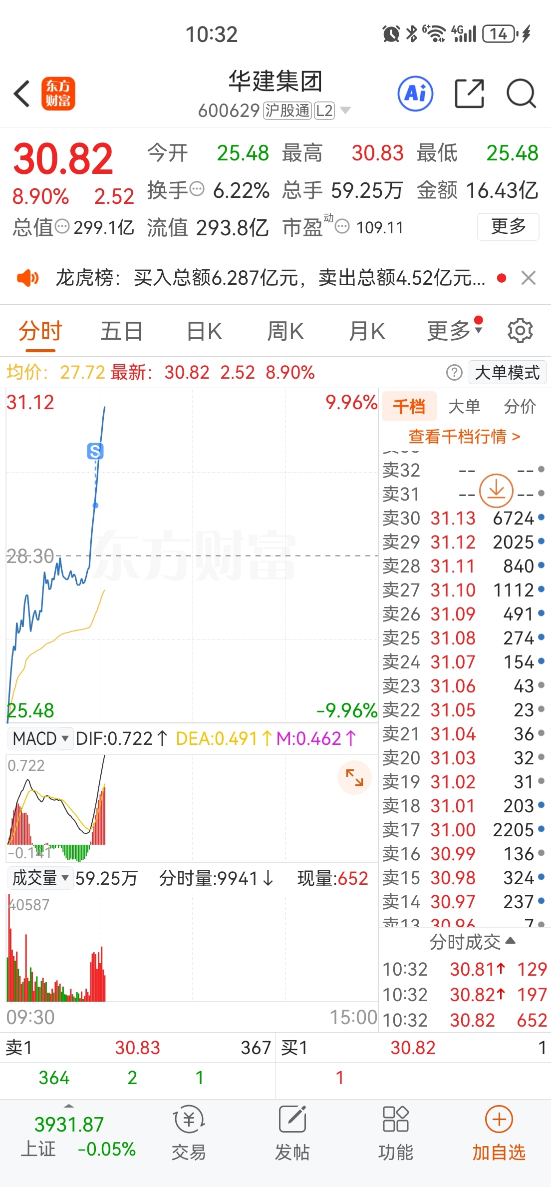 $华建集团(SH600629)$ 刚睡醒天塌了,我设置的条件单啊错过了