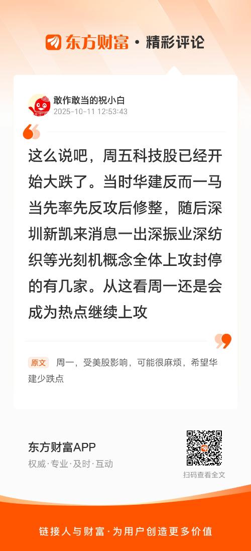 这么说吧,周五科技股已经开始大跌了。当时华建反而一马当先率先反攻后修整,随后深圳新凯来消息一出深振业深纺织等光刻机概念全体上攻封停的有几家。从这看周一还是会成为热点继续上攻 我在《周一,受美股影响,可能很麻烦,希望华建少跌点》的评论获得了大家的关注。