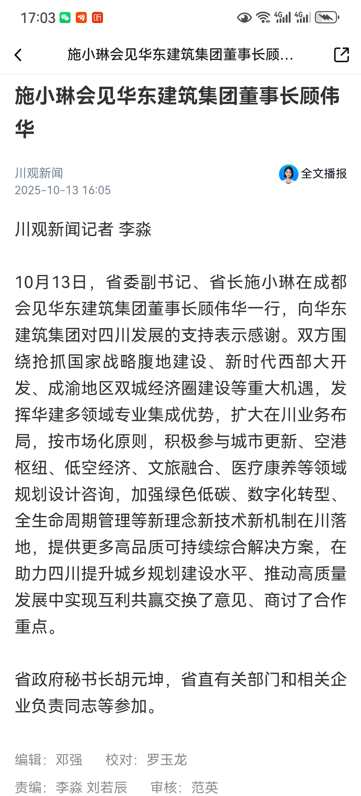 $华建集团(SH600629)$ 顾董准备在四川投资了