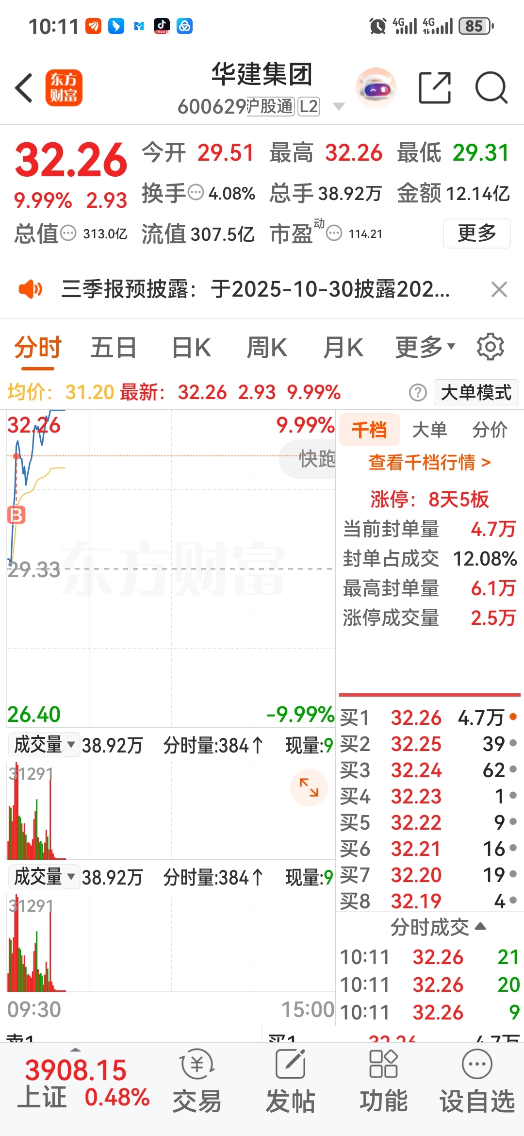 $华建集团(SH600629)$ 虽然追高了,还好封住了。